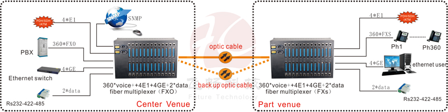 Ø The equipment is 6U high and 19 inch length include one fiber card(include SNMP) and 12 Pcs 30 FXO/FXS card.