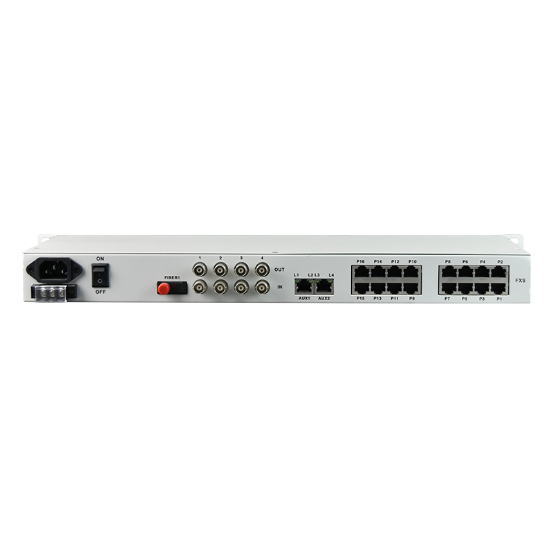 在中繼端,設(shè)備與程控交換機(jī)相連;在用戶端,設(shè)備與普通電話機(jī)相連。中繼端設(shè)備與用戶端設(shè)備之間通過光纜相連。