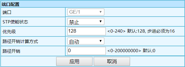 | 路徑開銷計算方式 | STP端口的路徑開銷的計算方式,[自動]或[管理],默認為自動 |