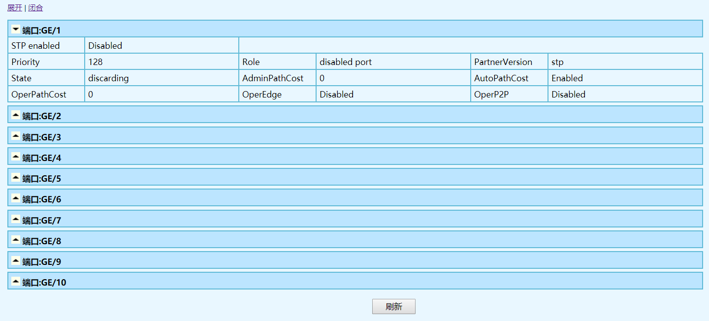 | STP使能狀態(tài) | 端口的STP使能,[禁止]或[使能],默認為禁止 |