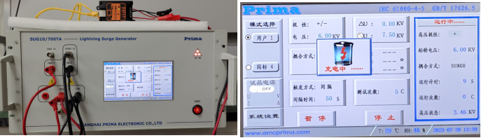 電源接口與RS485接口可過:短路電流波10/700μs,開路峰值輸出電壓6KV,內阻40歐的雷擊測試