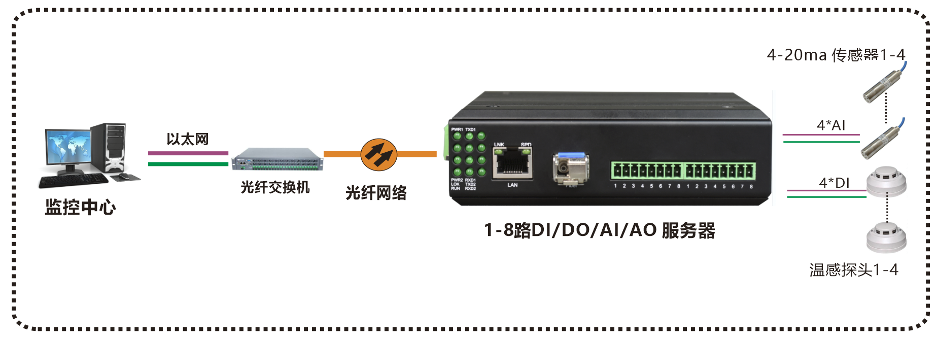 | 業(yè)務(wù)端口描述 | 8路DI/DO/AI/AO接口;1路百兆電口+1路百兆SFP光口 |