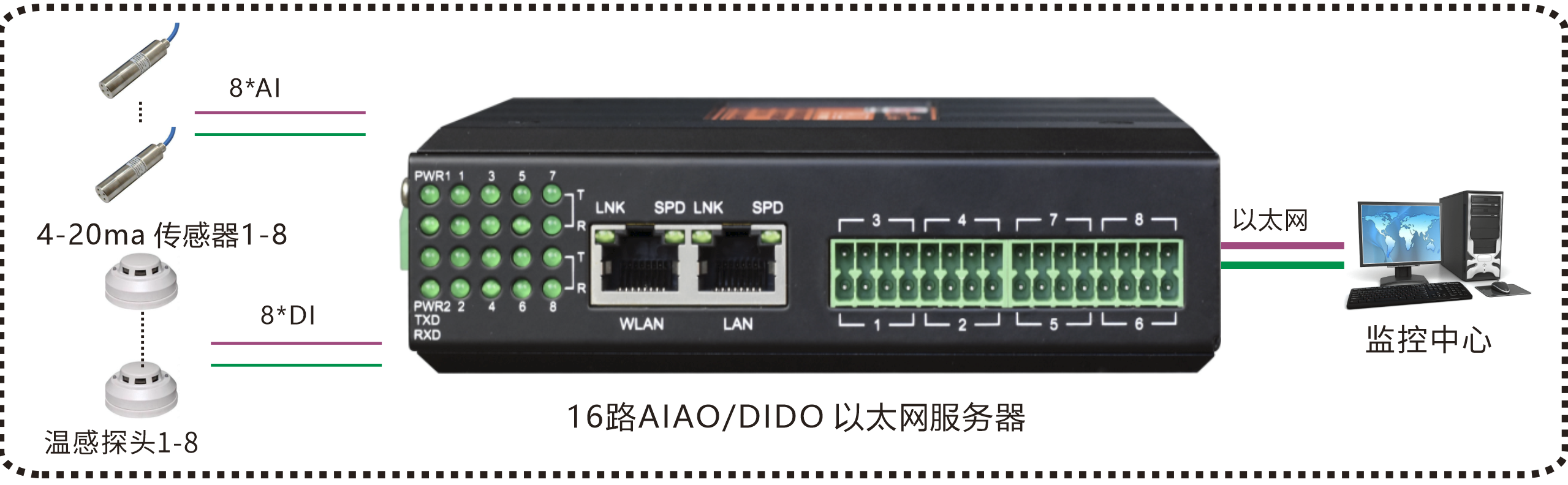 | 業(yè)務端口描述 | 16路DI/DO/AI/AO接口;2路百兆電口 |