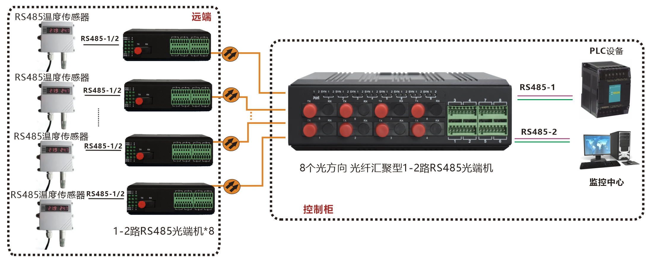 | 產(chǎn)品功能描述 | 8路匯聚光口RS485光端機 |