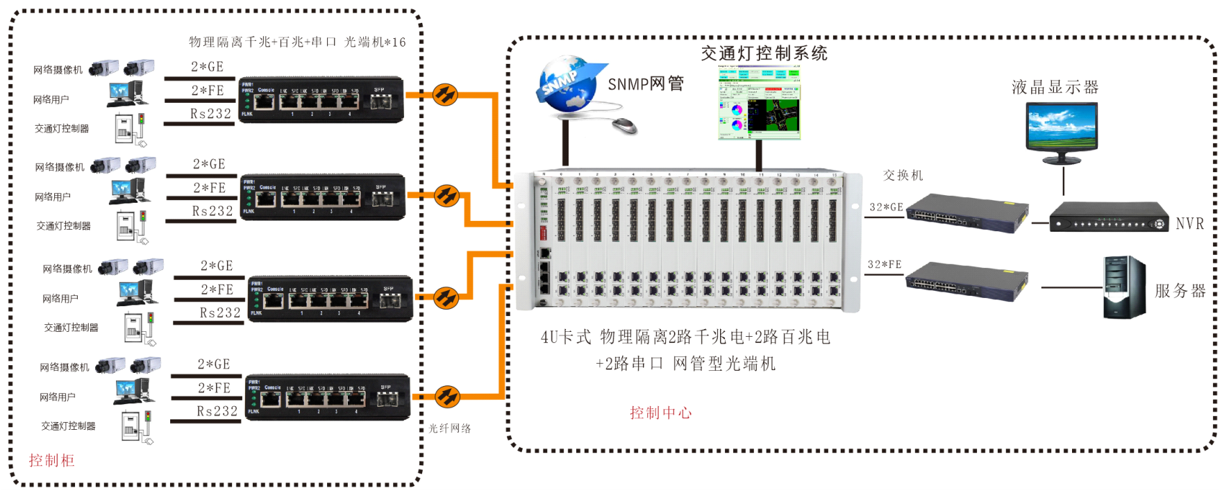 設(shè)備基于以太網(wǎng)交換芯片+FPGA方案,帶遠(yuǎn)端OAM幀管理功能支持SNMP網(wǎng)管,也可以與4U插卡式的對(duì)應(yīng)設(shè)備相連。
